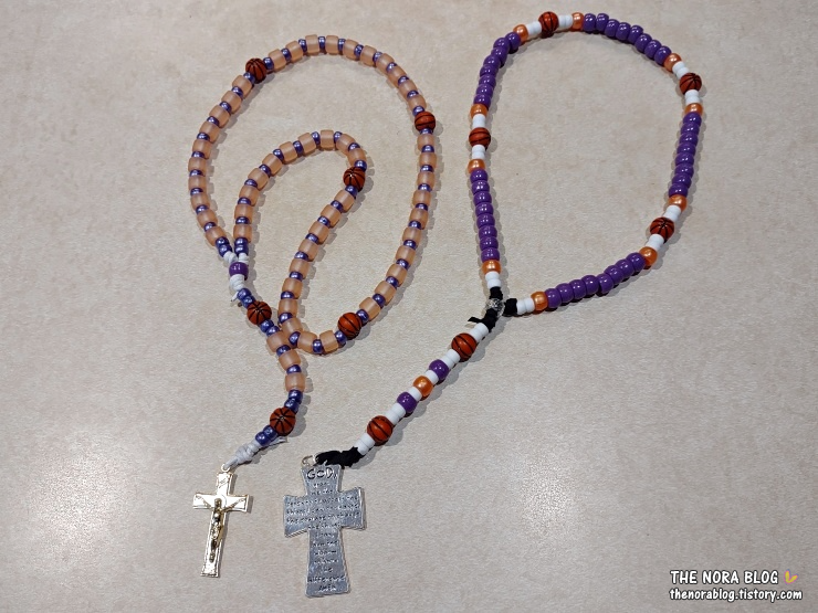 대학 농구경기의 축제인 만큼 묵주도 농구공 디자인으로 장식되어 있다.