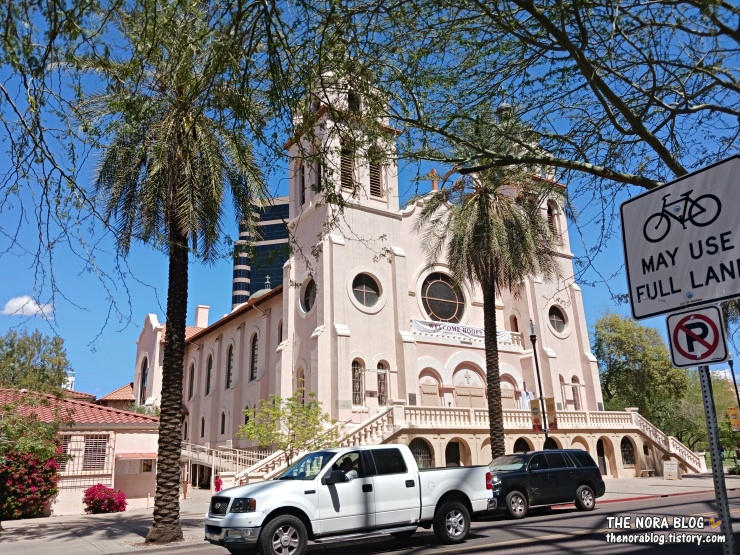 St. Mary's Roman Catholic Basilica는 피닉스 도심의 고층 건물에 둘러싸인 아담하고 포근한 성당이다. 성당 정원은 담이나 문이 없는 개방형이라서 편하게 성당 정원에 들어가 구경할 수 있다. 피닉스 중심부에 들르면 한 번 사진 찍고 갈 만하다.