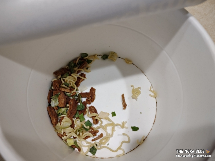 면은 일반 육개장 사발면의 얇은 면과 비슷하다. 그런데 양이 꽤 많다.