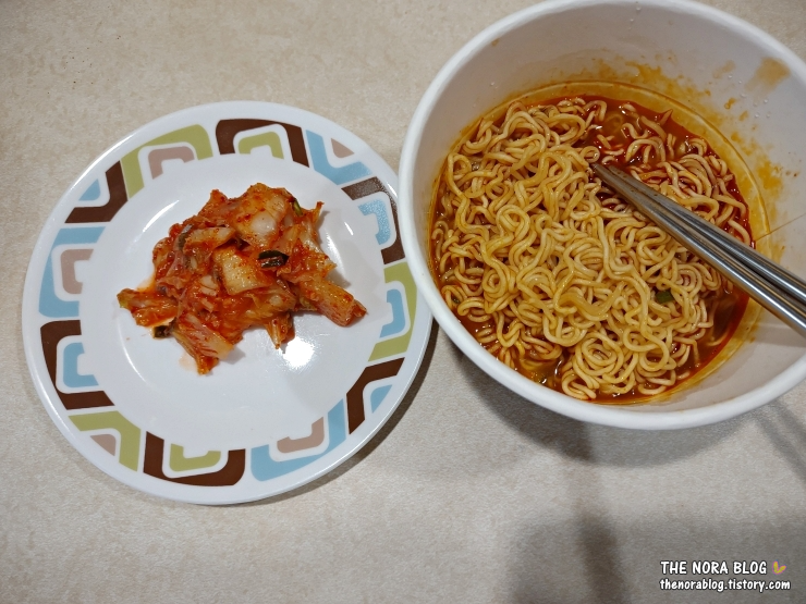 이번 주 코스트코에서 김치가 할인이라서 4 통 사 왔다. 김치를 조금 꺼내 함께 먹었다. 라면과 김치의 조합은 염분이 좀 많은 게 사실이다. 그런데 또 이 둘이 서로 너무 잘 어울려서 거부할 수 없는 조합이다.