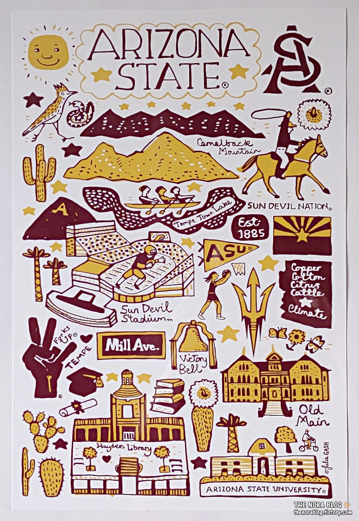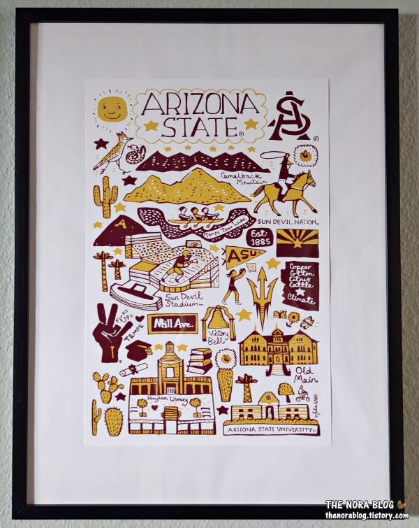 셋째가 진학한 애리조나 주립대에서는 포스터를 받지 않았다. 마침 애리조나 주립대 템피 캠퍼스에 방문할 일이 있어서 간 김에 학교 서점에서 대학 포스터를 샀다. 포스터 사이즈는 12x18 인치고 가격은 $16 (22,400원)이다.