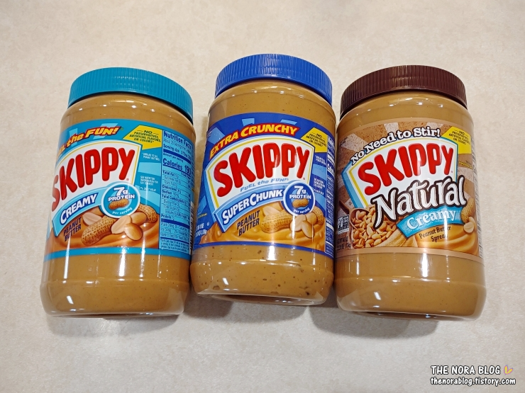위 세 제품 중에서 특히 더 맛있고 그런 건 못 느꼈지만 땅콩조각이 쏙쏙 씹히는 Skippy Super Crunchy Peanut Butter가 제일 맛있었다.