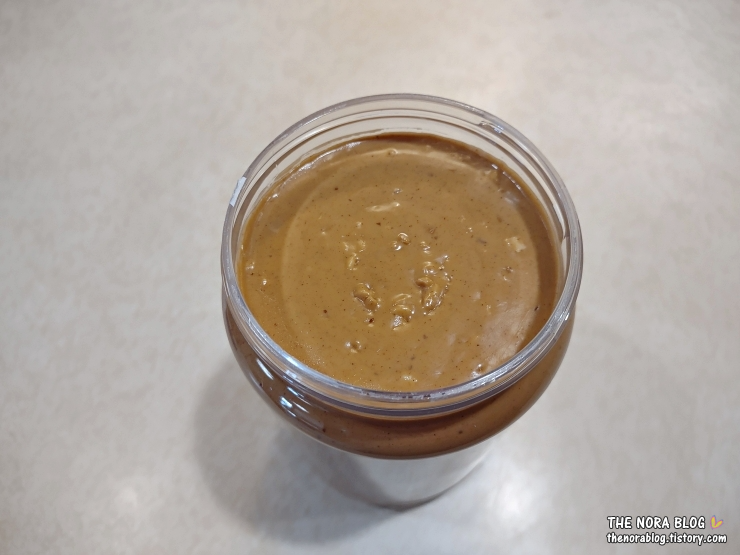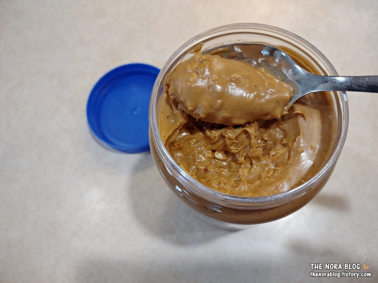 꽤 크리미 하다. 개봉한 땅콩버터는 냉장고에 보관하는데 냉장고에서 꺼내도 퍽퍽하지 않게 부드럽게 퍼지는 걸 보면 상당히 크리미 한 거다.