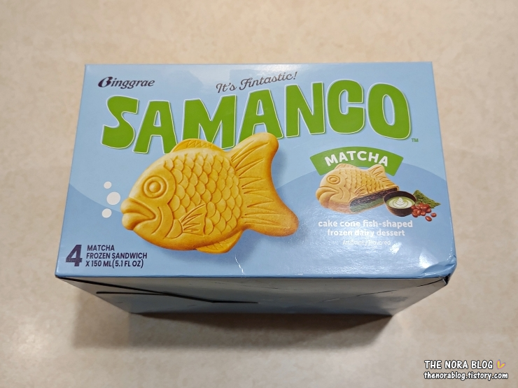 그 맛이 그리웠는지 막둥 넷째가 이번 한인마켓에 함께 갔을 때 붕어빵 아이스크림을 하나 집는다. 이번에 산 건 한국 제품인 빙그레 말차 붕어싸만코다. 영문명은 Binggrae Matcha Samanco다.
