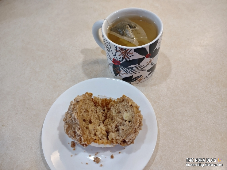 보통 아침식사로 머핀을 잘 안 먹는데 애플 소보로 머핀이 너무 먹고 싶어서 이걸로 하루의 식사를 시작했다.