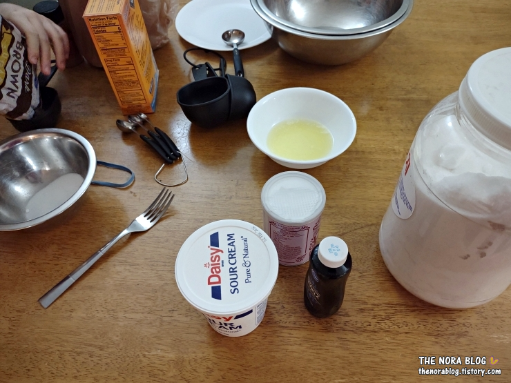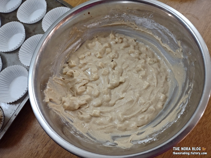 머핀을 반죽할 재료들을 다 섞어 두고,