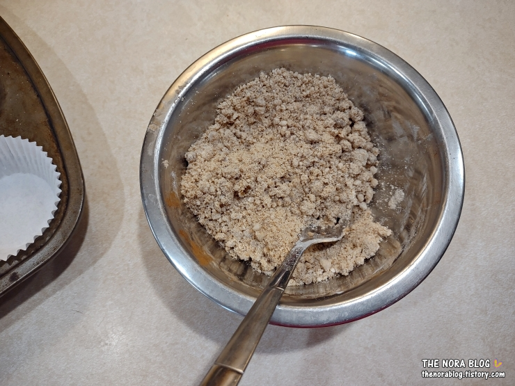 머핀 위에 소보로를 덮을 거라서 streusel (소보로)도 준비했다.