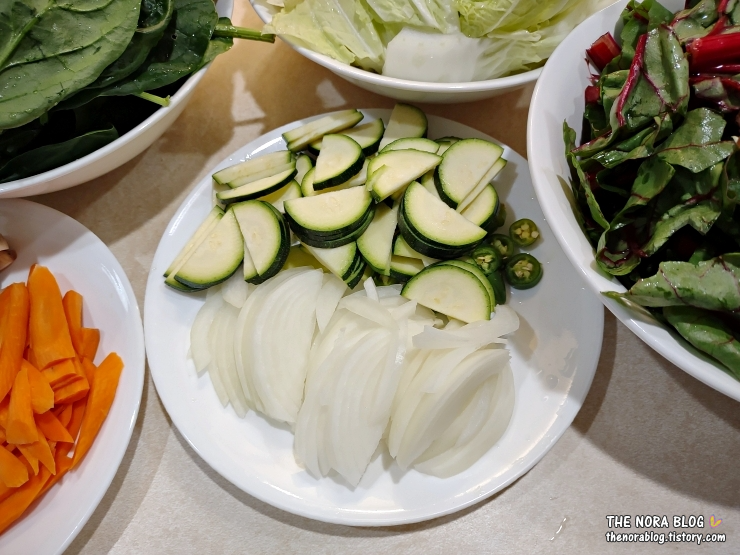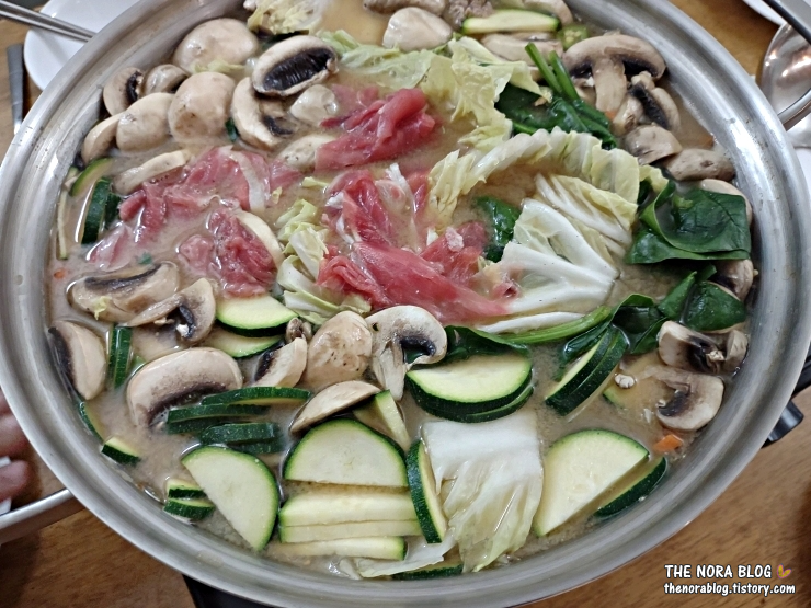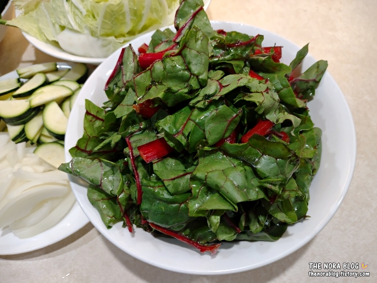 채소 넣을 만큼 넣고 고기도 넣고 익혀가면서 먹기 시작했다.
