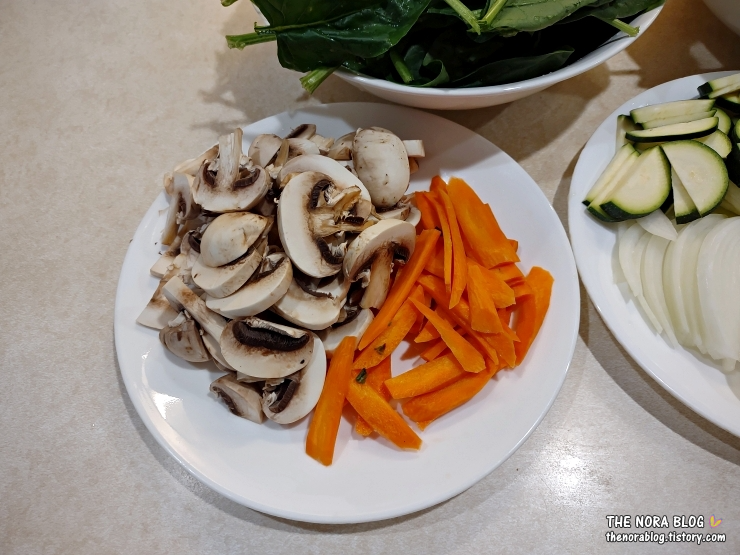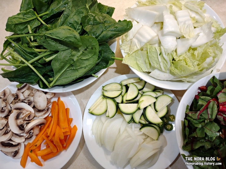 냄비의 개시는 뺏겼지만 나도 사용하고 싶다. 며칠 후 나름 샤브샤브라 생각하는 냄비요리를 만들어 먹기로 했다. 채소 재료는 내 주변 미국 일반 마켓에서 쉽게 구입할 수 있는 것들로 준비했다.