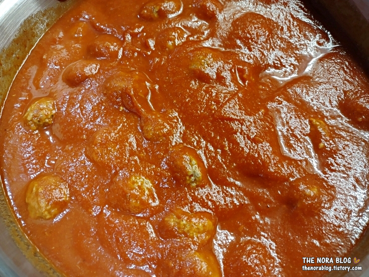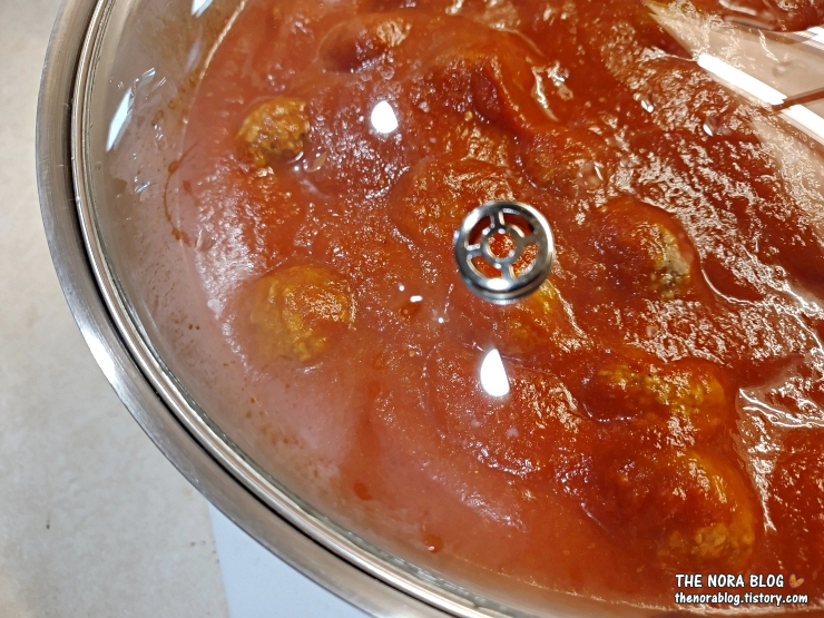 이 냄비를 보더니 남편이 가격에 비해 품질이 꽤 좋다고 더 좋아서 신났다. 먼저 냄비를 개시해도 되겠냐고 내게 묻는다. 그러라고 했더니만 이 냄비에 스파게티 & 미트볼 소스를 데우며 저녁식사를 만들어준다.