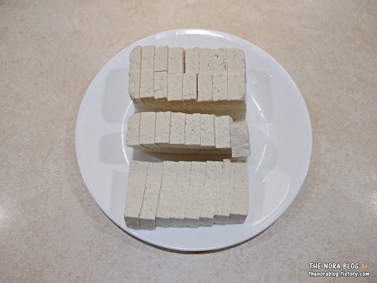동네마켓에서 구입한 Simple Truth extra firm 두부는 잘라 샤브샤브에 넣을 준비를 했다.