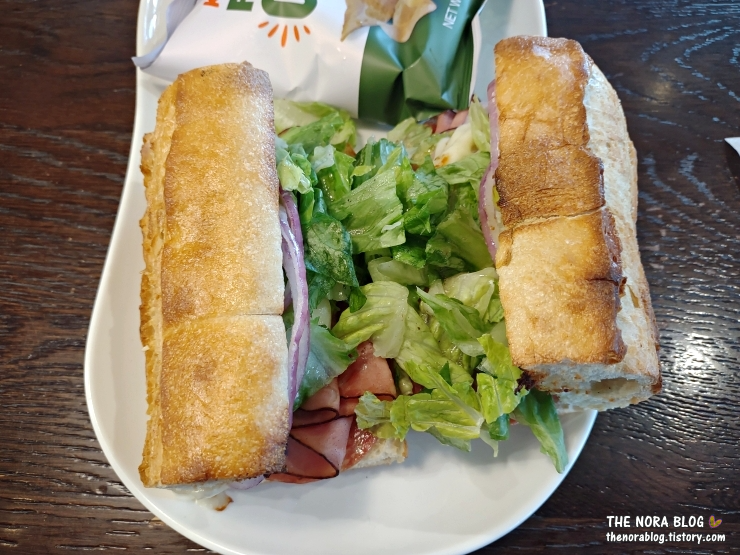 토스티드 이탈리아노는 여러 번 소개했으니 오늘은 특별히 할 이유는 없는데 이번에 만들어 주신 분이 상추를 정말 듬뿍 넣어 주셨다. 샐러드 느낌으로 먹을 수 있어 좋았다. 막둥 넷째와 한 개씩 나눠 먹었는데 양이 많아서 난 2/3 먹고 1/3은 막둥이에게 넘겼다. 맛이 좋아서 주문해도 후회 없는 샌드위치다.