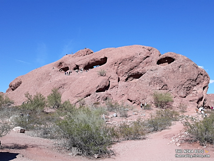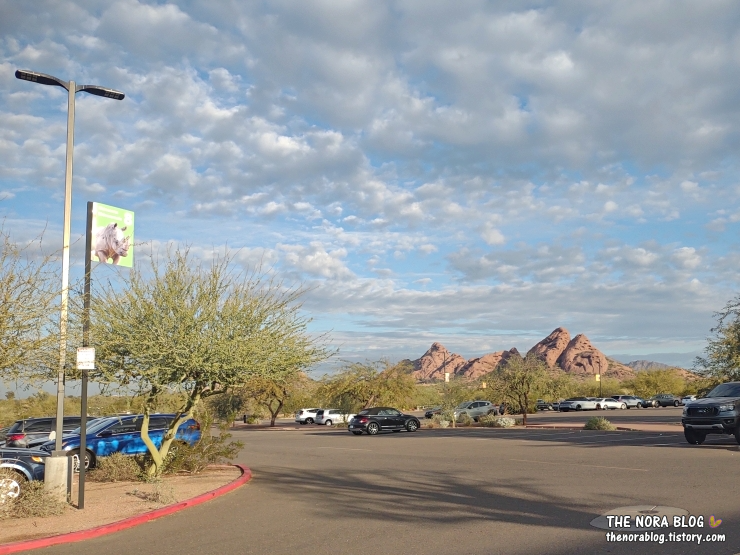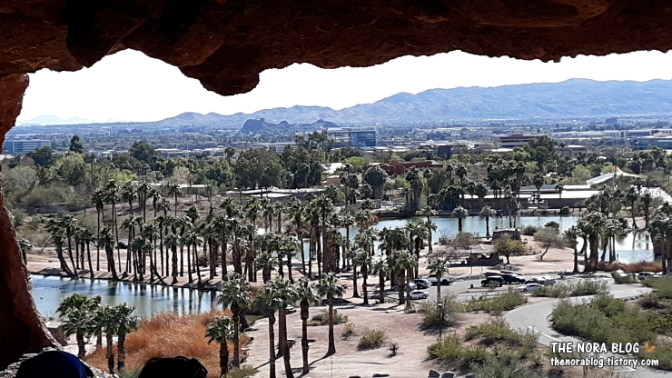 피닉스 동물원 주차장 바로 뒤는 파파고 공원 (Papago Park)과 그대로 연결된다. 파파고 공원은 큰 피닉스 시의 상당히 규모가 큰 공원이다. 저기 보이는 큰 암석은 구멍 난 돌 Hole in the Rock일 거다. 이름 그대로 큰 구멍이 있는 돌덩이인데 피닉스 동물원 입구 쪽에서 보면 앵글 때문에 구멍이 보이진 않는다.