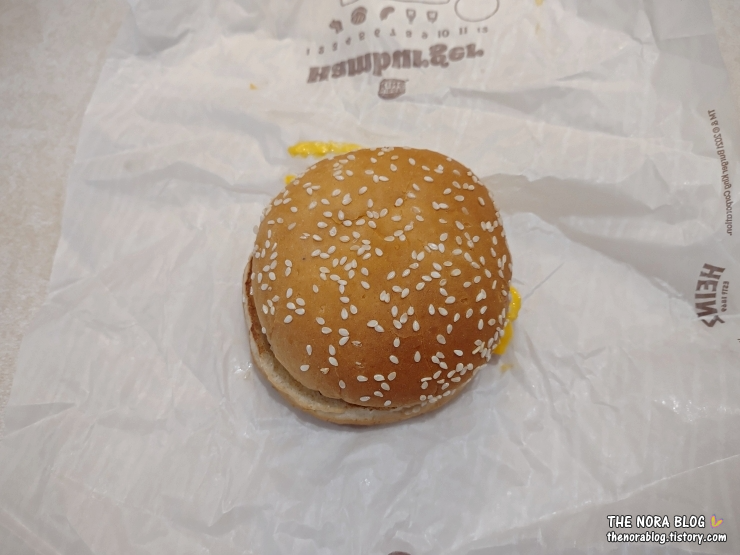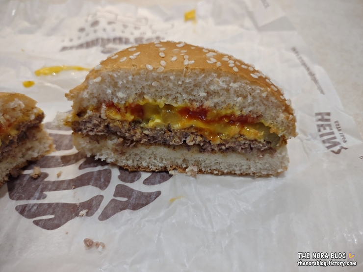 이미 와퍼 1/4을 먹어서 치즈버거 하나를 다 먹긴 양이 많다. 1/2은 먹고 나머지 1/2은 나중 저녁에 먹기로 했다.