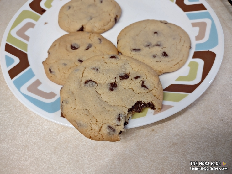 큼직하고 맛있는 초콜릿 칩 쿠키가 가득가득 나왔다. 16-20개 구워진 것 같은데 며칠 동안 두고두고 먹을 수 있겠다.