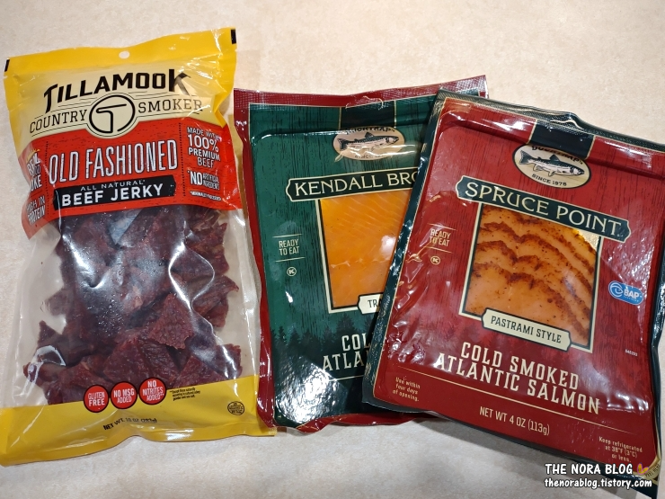 소고기 육포를 먼저 먹었다. 틸라묵 컨트리 스모커 소고기 육포 (Tillamook County Smoker Beef Jerky)는 내가 즐겨 사 먹는 제품이다. 여러 번 소개한 적이 있다.