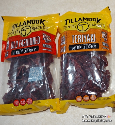 틸라묵 컨트리 소고기 육포 여러 맛 중에서 Old Fashioned Beef Jerky와 Teriyaki Beef Jerky만 먹었는데 Old Fashioned Beef Jerky가 더 맛있다. 요즘엔 Old Fashioned Beef Jerky로만 사 먹는다.