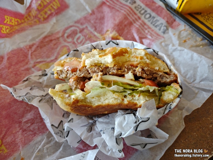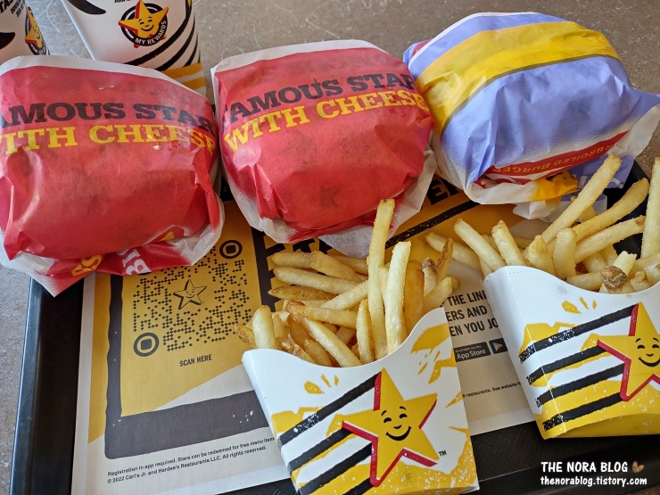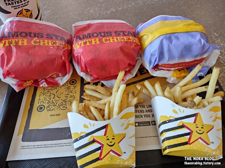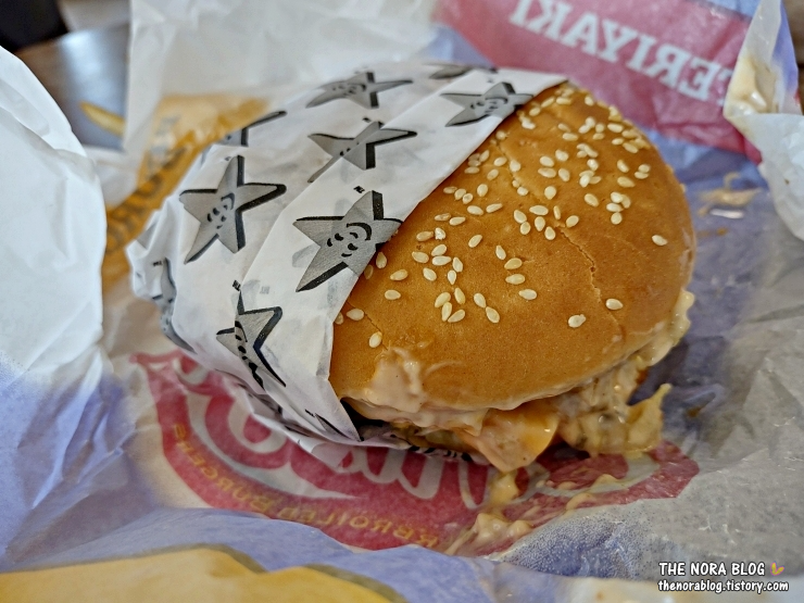 전에는 Famous Star였는데 오랜만에 칼스 주니어와 와 보니 이젠 앞에 Single이 붙어 Single Famous Star다. Double Famous Star와 Triple Famous Star도 있는 걸 보니 싱글은 소고기 패티와 치즈가 각각 1개씩, 더블은 각각 2개씩, 트리플은 각각 3개씩 들어가는 것 같다. 내겐 싱글이면 충분하다.