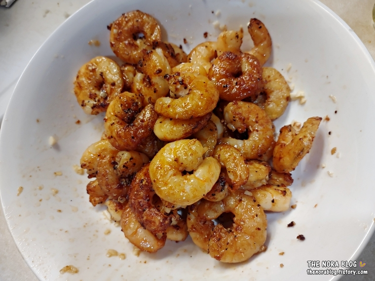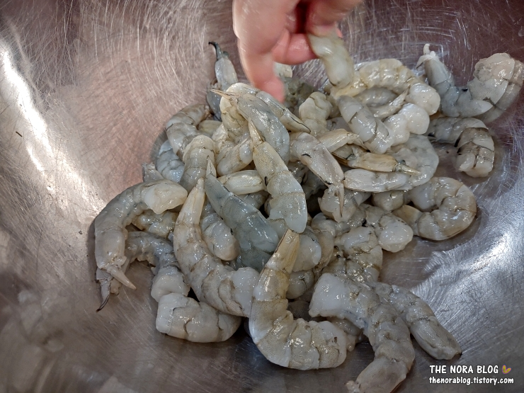 막둥 넷째가 갈릭 새우로 타코를 만들어 먹고 싶다고 하니 그 요청에 따라 셋째가 준비에 들어갔다. 한 번에 3 파운드 (1.4kg)를 다 조리해 먹는 건 양이 너무 많아서 오늘은 반 정도만 새우 타코로 만들어 먹을 거다.