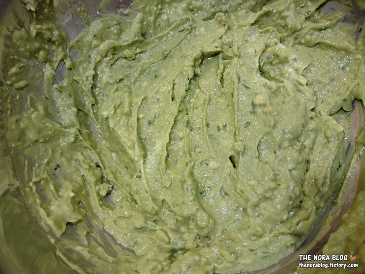 셋째가 잘라놓은 아보카도 4조각을 가져다 타코에 얹었다.