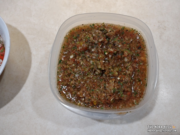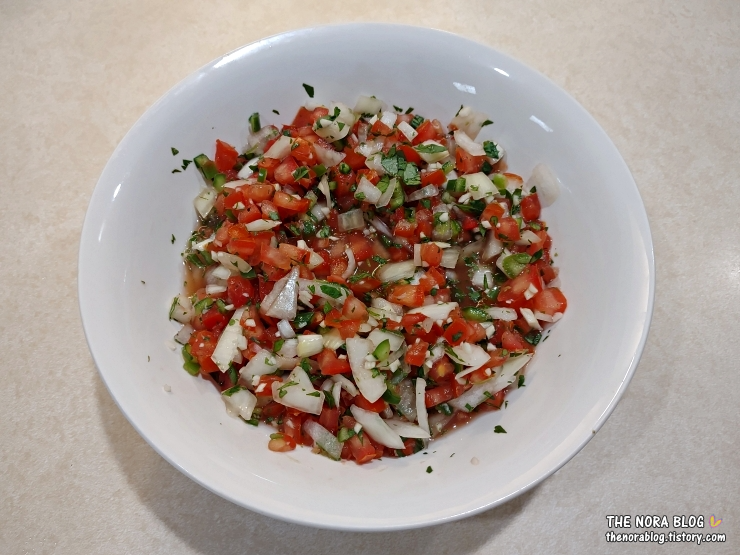셋째가 살사를 만드느라고 아주 바쁘다. 한 종류만 만들어도 충분히 행복한데 두 가지 종류로 준비했다. 하나는 그냥 일반적인 살사고, 다른 하나는 피코 데 가요 (pico de gallo)다. 재료를 정말 정성껏 준비하고 조리한다. 셋째가 살사를 만드는 걸 보면 손도 빠르고 부지런하다.