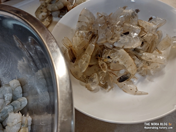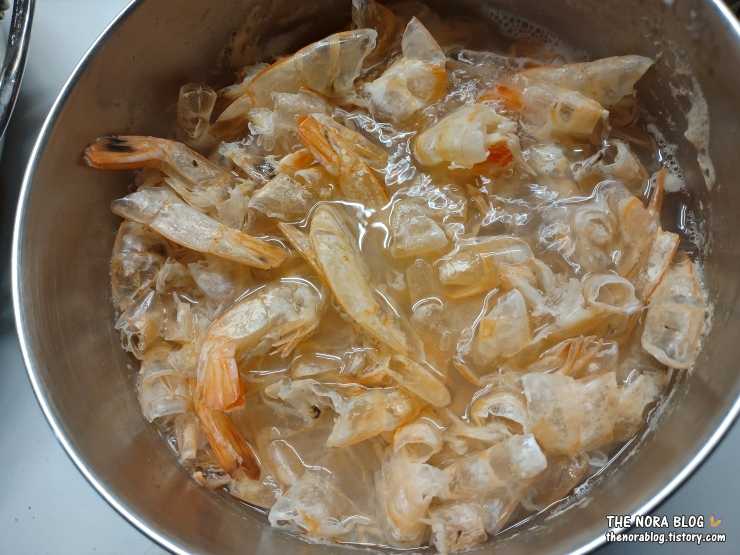 셋째가 새우껍질을 벗겨 잘 모아 두길래 뭐 하는 건가 했더니… 새우껍질로 육수를 우려내겠다고 말한다. 왜???