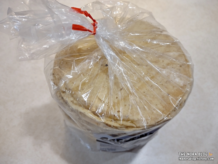 어제 히스패닉 마켓에 갔었는데 마켓에서 직접 만드는 따끈한 옥수수 타코쉘이 있어서 그걸로 샀다. 100장인데 이거 언제 다 먹으려나 모르겠다. 따뜻할 때 포장을 해서 안에 물기가 그대로 방울져 있다. 빨리 먹어야 할 거다.