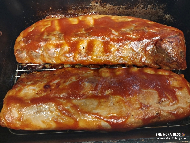 Pork Loin Back Ribs 2짝을 모두 오븐에서 조리하기 시작했다.
