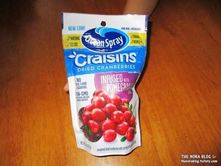 Ocean Spray에서 만든 건크랜베리를 석류 쥬스에 우린 Craisins Pomegranate을 한번 먹어 봤어요. 합성 첨가물이나 방부제가 들어가지 않았고, Non-GMO 제품입니다.