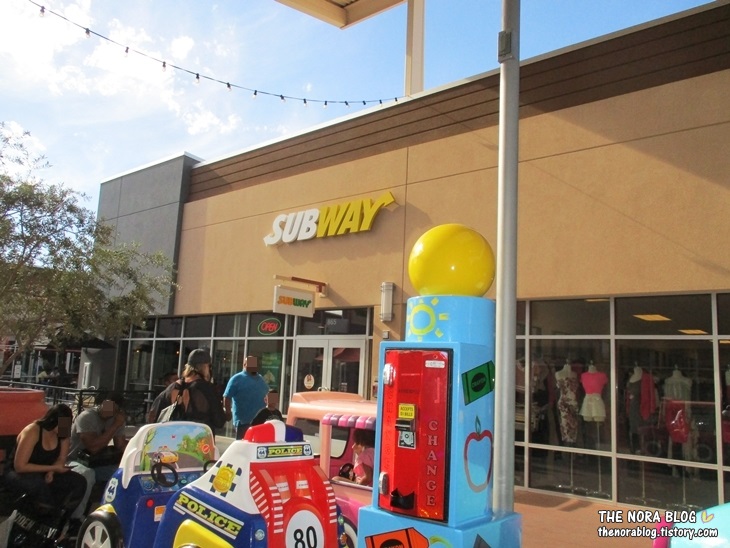 식당/스낵점은 5군데 봤어요. Nestle Toll House와 Wetzel's Pretzels는 상점들 사이에 있고, Fried Pie, Subway, Dairy Queen은 같은 장소에 위치해 있습니다. 울 식구들은 Subway에서 샌드위치를 먹었어요.