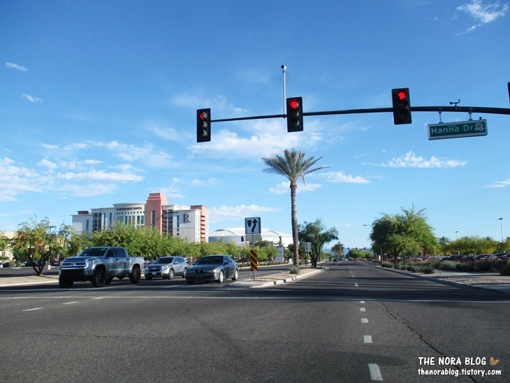 방향을 틀면서 보니까 University of Phoneix Stadium이 조금 더 잘 보여요. 스테이디움 바로 앞의 건물은 Renaissance Phoenix Glendale Hotel입니다.