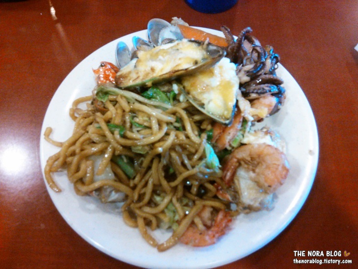 수영을 마치고는 몸이 피곤하긴 하지만 힘이 좀 남길래 모두 함께 중식 뷔페에 갔어요. 다들 알아서 가져다 먹고 애리놀다도 양껏 가져다 먹고. 애리놀다의 첫번째 접시만 사진찍고 나머지는 못 찍었어요. 먹느라 넘 정신이 없었거든요. 가장 맛있게 먹었던 것은 원하는 재료를 골라 오면 즉석 철판구이 해주는 거였는데 이것도 사진은 안 찍었구요. 뷔페에서 철판구이 포함 한 4접시 먹었나 봐요. (엄청 먹었어요) 운동을 하고 난 후라 그런지 입맛이 더 좋았던 것 같아요.