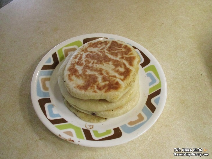 어젯밤 이스트 넣고 반죽해서 오늘 아침에 만들었어요.