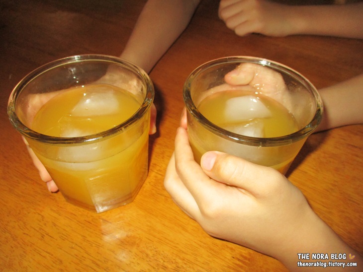 아래는 직접 짜서 완전 신선한(?) 오렌지 쥬스.
