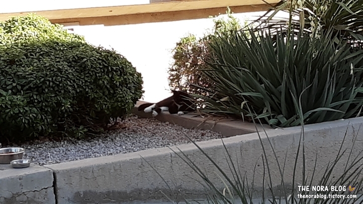 우연히 마주친 길양이씨들입니다. 울집 큰 녀석들이 고양이를 엄청 좋아해서 사진을 찍어 왔네요. 이곳에서는 고양이 밥을 잘 챙겨주고 계신 듯합니다.