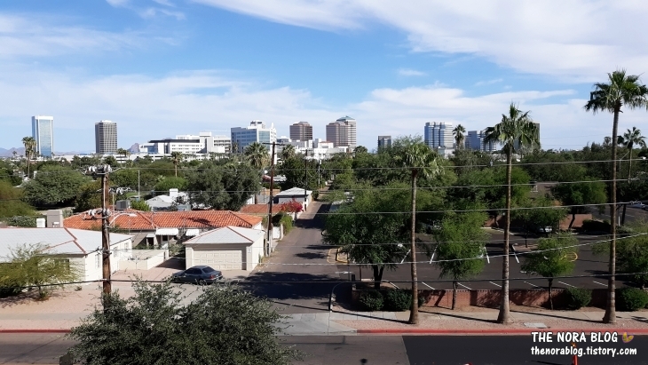 피닉스 중심가에는 큰 빌딩은 그리 많지 않지만 좀 떨어져서 보면 나름 리조트 도시 같은 그런 분위기를 풍겨요. 뭔가 편안해 보이는 그런 모습입니다. 은근 이 피닉스 중심가 모습을 좋아하는 1인.
