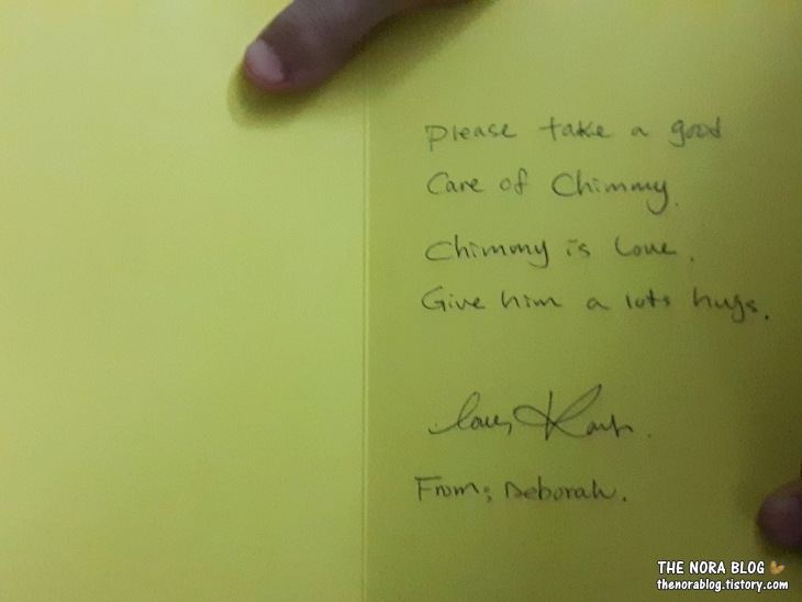 바쁘신 와중에도 울 셋째에게 치미를 선물해주시겠다는 약속을 잊지 않으신 데보라님. 늘 감사하는 마음이 들게 해 주시는 소중한 블로그 이웃님이세요. 지난주에 치미를 발송하셨다는 말씀을 하셨는데 드디어... 오늘 도착했습니다. 치미가 오늘 올 거라는 걸 직감적으로 느꼈는지 셋째가 아침부터 유튜브의 치미 애니메이션을 보여주면서 "치미, 치미" 노래를 부르더라고요. 배달이 되자마자 셋째의 기대감은 폭발합니다.