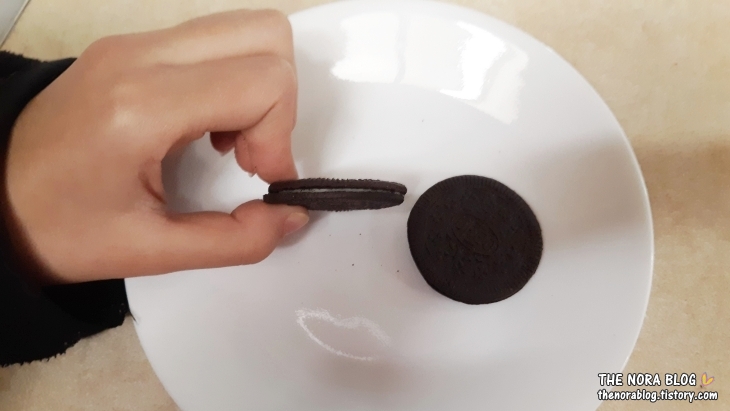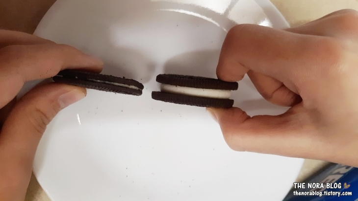 역시 오랫동안 사랑받는 오레오 오리지널은 다 이유가 있는 법. 어차피 오레오를 집는 것 자체가 아주 달달한 과자 먹기로 하는 거니까 일반 오레오 쿠키로 선택해 먹는 게 제일 나을 듯합니다.