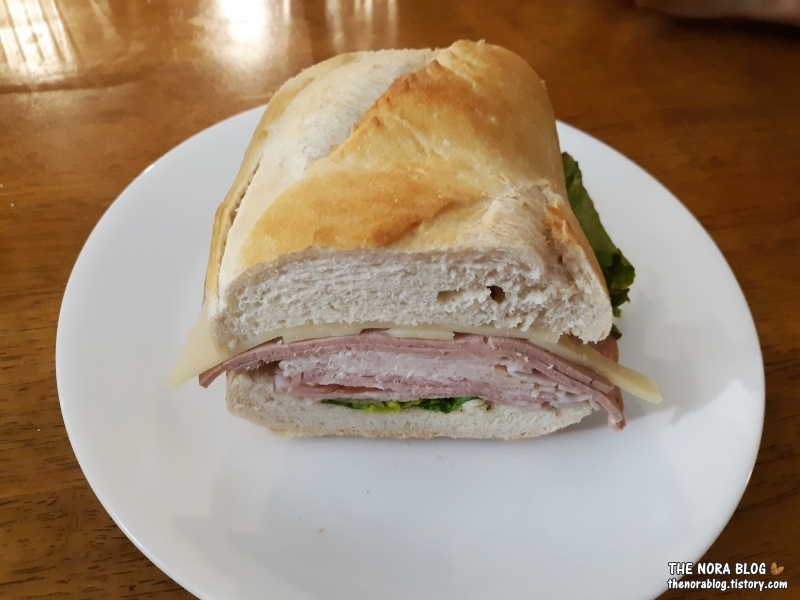 요것은 애리놀다가 먹었던 샌드위치. 반 먹고 입에 맞지 않아서 나머지는 남편 줬어요. 남편과 아이들은 그래도 자기 샌드위치는 다 먹었어요.