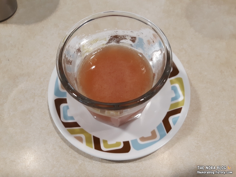 탄산 버전 쥬스를 거의 다 마시니까 더 마시라고 또 가져옵니다. 이젠 아무래 맛있어도 더 이상 못 마시겠어요. 배가 이미 마신 쥬스로 출렁출렁 합니다. 더 가져온 것은 셋째랑 막둥 넷째랑 나눠 마셨어요.