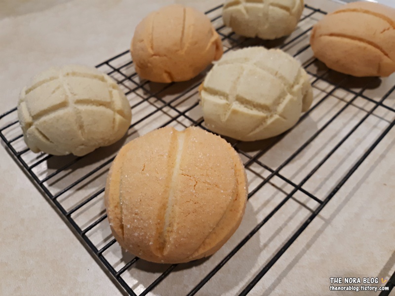 베이킹 좋아하는 둘째는 일본 빵인 멜론빵(melon pan)도 잘 알더군요. 멜론빵은 한국식으로 보면 소보로빵과 비슷한데 겉모습이 멜론같이 생긴 이쁜 빵이에요. 겉은 바삭, 속은 부드럽고 촉촉. 이