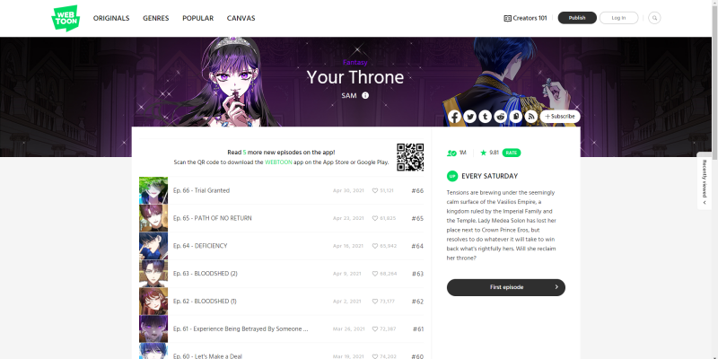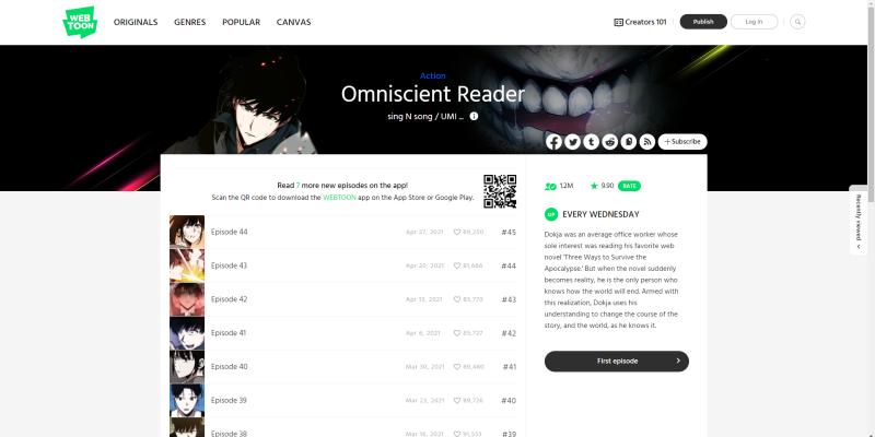 Webtoon.com에 올라오는 웹툰은 모두 영어로 번역되어 있어 영어권 독자들도 읽을 수 있습니다.